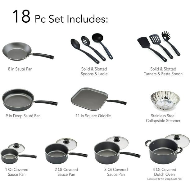 Primaware 18 Piece Non-stick Cookware Set, Steel Gray Primaware 18 Piece Non-stick Cookware Set, Steel Gray Primaware 18 Piece Non-stick Cookware Set, Steel Gray