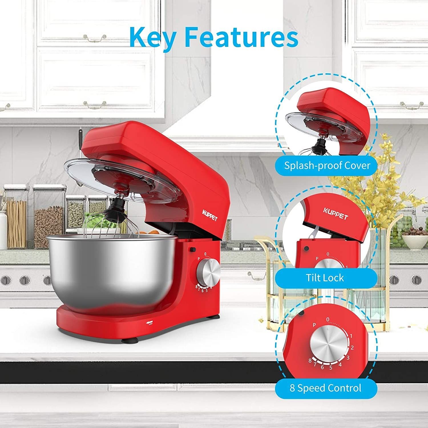 KUPPET Stand Mixer, 8-Speed Tilt-Head Electric Food Stand Mixer with Dough Hook, Wire Whip & Beater, Pouring Shield, 4.7QT Stainless Steel Bowl RT KUPPET Stand Mixer, 8-Speed Tilt-Head Electric Food Stand Mixer with Dough Hook, Wire Whip & Beater, Pouring Shield, 4.7QT Stainless Steel Bowl RT KUPPET Stand Mixer, 8-Speed Tilt-Head Electric Food Stand Mixer with Dough Hook, Wire Whip & Beater, Pouring Shield, 4.7QT Stainless Steel Bowl RT