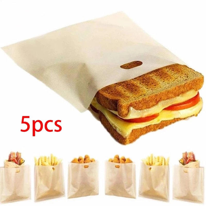 Home > 5pcs; Reusable Toaster Bags (6.3''x6.5''); Non Stick Bread Bags; Sandwich Bags; Fiberglass Toast Microwave Heating Pastry Tools; Home Kitchen Items