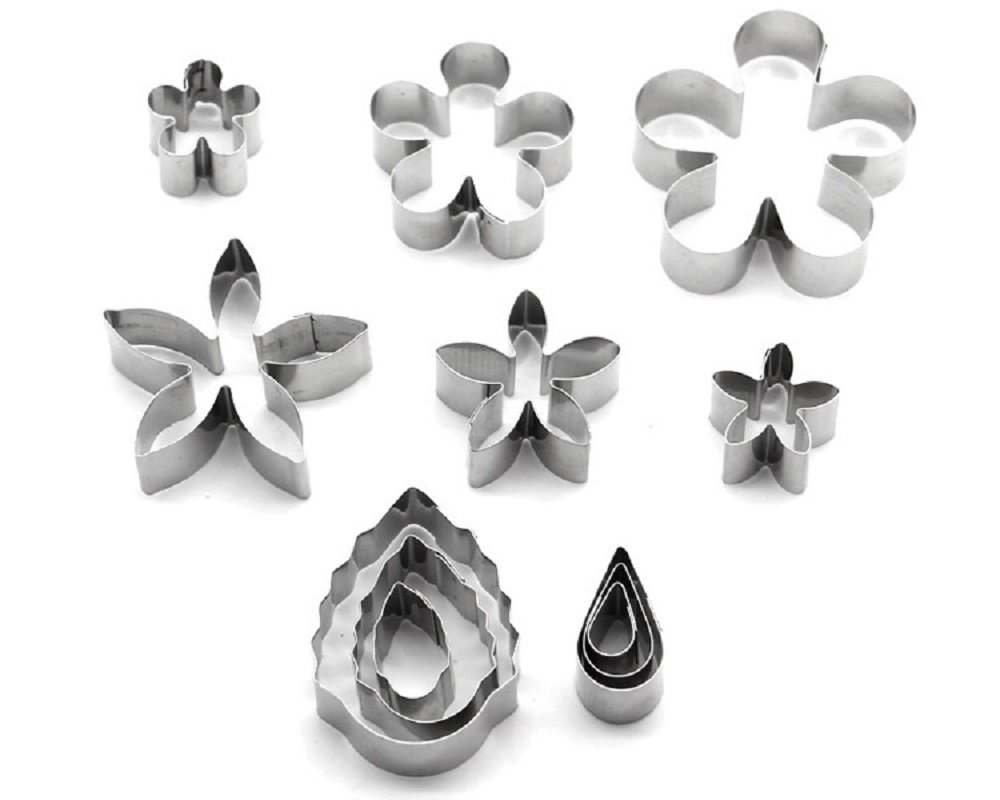 Made of 18/8 commercial grade 304 stainless steel, the 12 Piece Small Flower & Leaf Shaped Cutter Set has higher quality than the cheap stainless steel flower & leaf cutters.