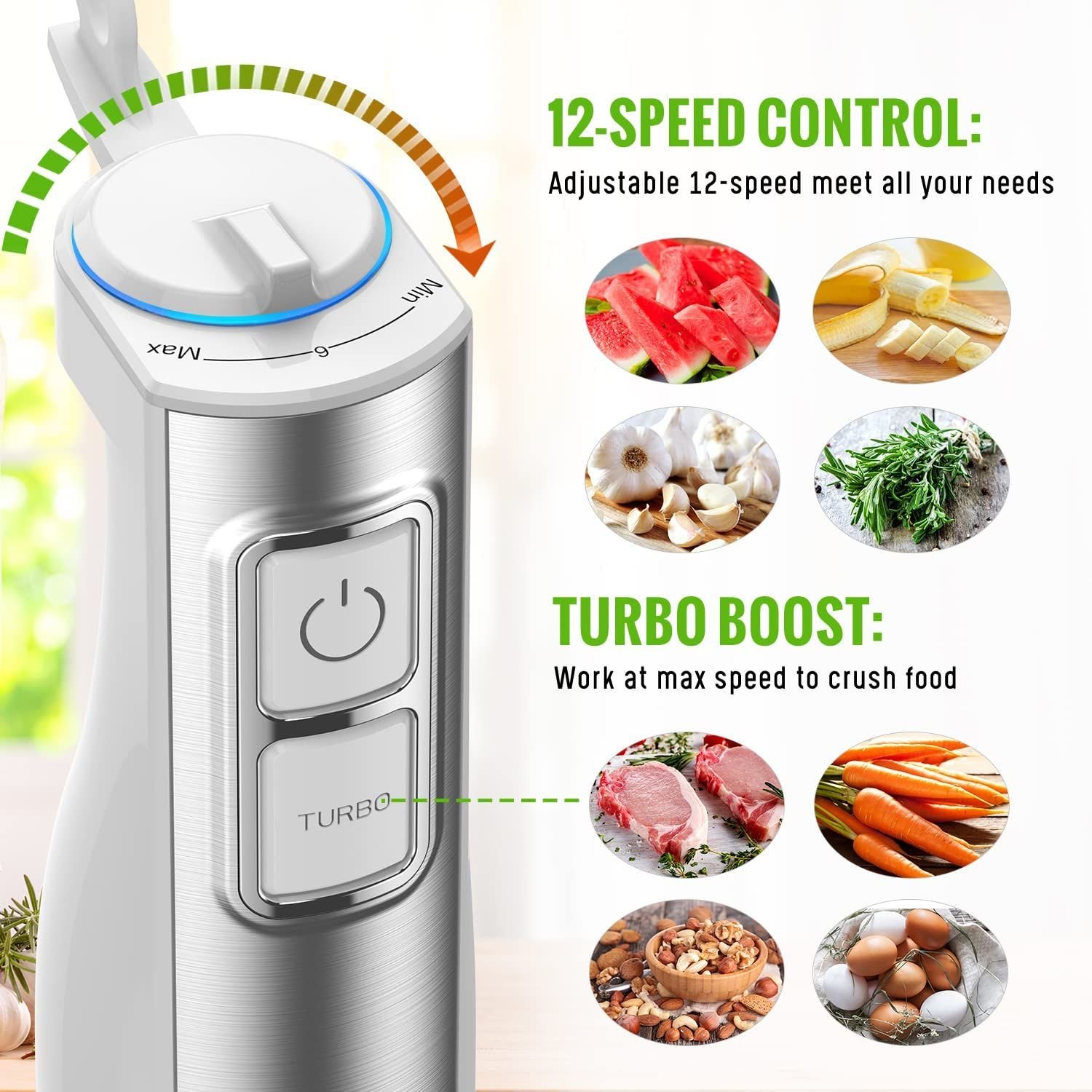 Our electric hand blender is so versatile enough to make fresh juice, puree, cream, cakes, desserts, butter, velvety soups, thick mayonnaise, chunky pesto, smoothies, baby food and more. Cooking is so entertaining that our handheld blender makes you fall in love with it!