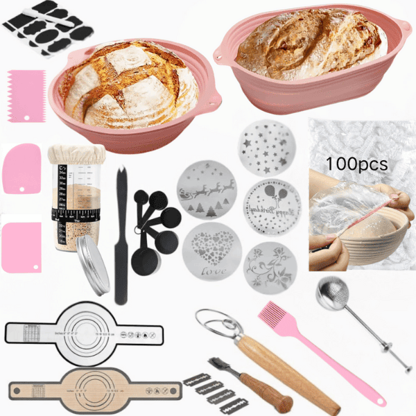 Upgrade Kit: Enhance your baking experience with our upgrade kit, which includes essential tools for bread enthusiasts. The silicone bread sling ensures easy transfer of bread, while the food thermometer accurately measures water temperature to achieve perfect sour dough feeding. Use 5 bread templates and flour and sugar sprinklers to personalize the appearance of your bread. The measuring spoon and glass bottle are equipped with built-in scales, making it easy to prepare yeast without the need for additional tools.