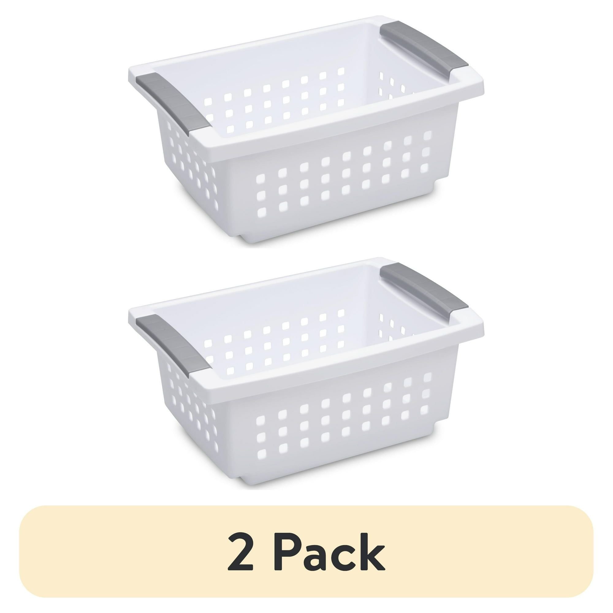Home > (2 pack) Small Stacking Basket, Open Plastic Bin, Space Saving Organizers, White