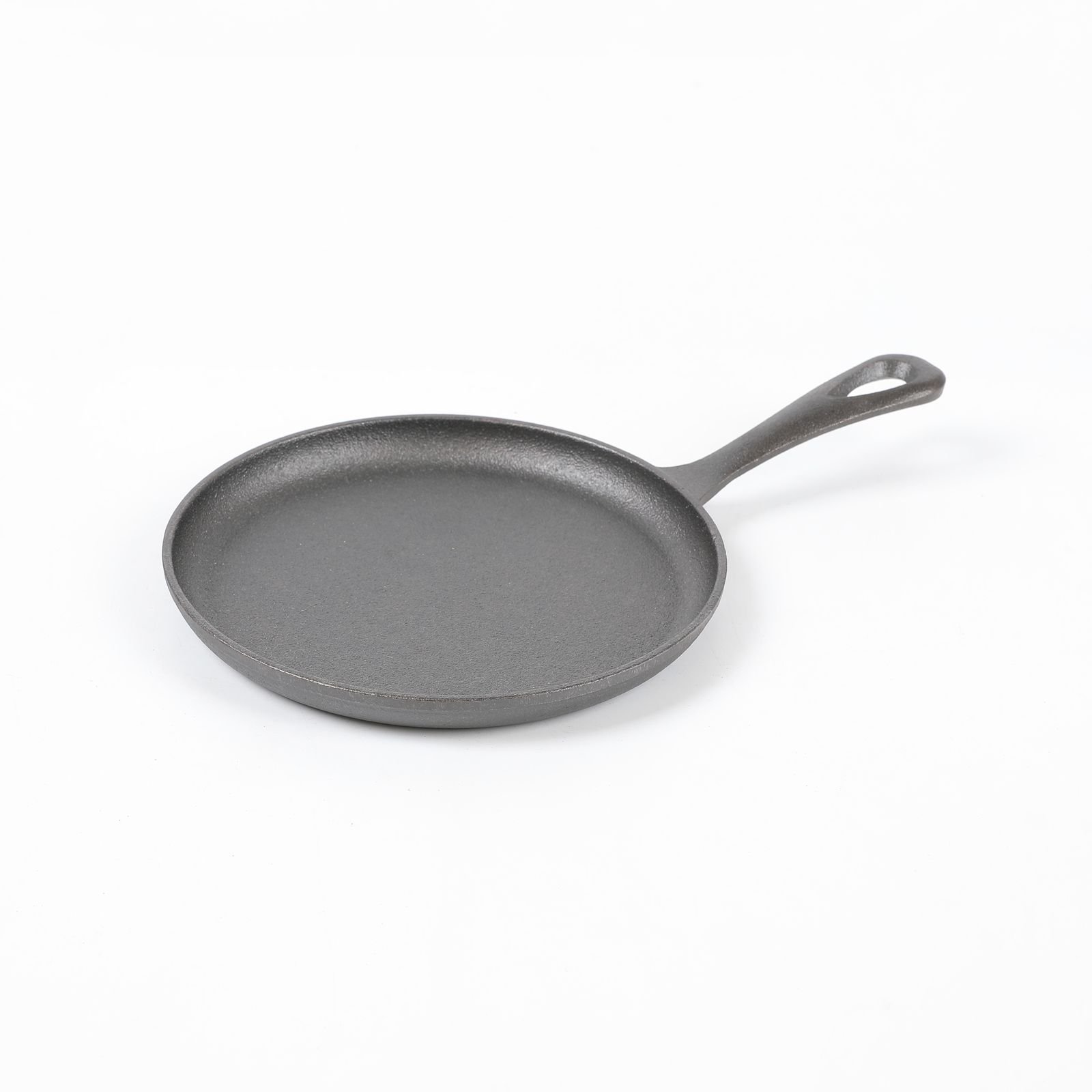 1.Size: 10''L(with the handle)x 6.3''D x 0.59''H. Multiple Uses: Use to sear, sauté, bake, fry, broil, or grill. Pre-seasoned: Pre-seasoned and ready to use Just wash and start cooking-no seasoning required.