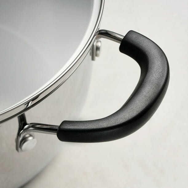 1.Tri-Ply Base construction with 18/10 stainless steel vessel, a thick aluminum core, and a magnetic stainless steel base.
