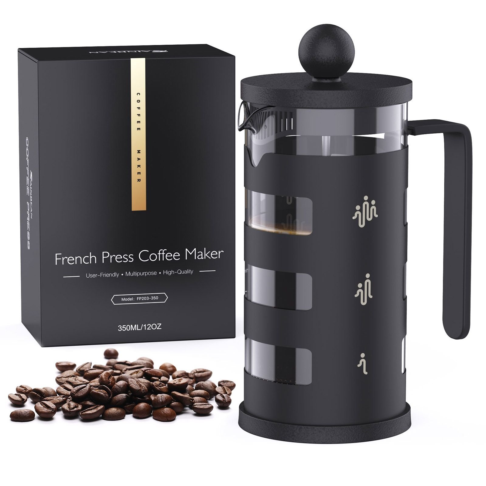 RAINBEAN  French Press Coffee Maker Easy Cleaning Cafeteria, Heat Resistant Borosilicate Glass, Black RAINBEAN  French Press Coffee Maker Easy Cleaning Cafeteria, Heat Resistant Borosilicate Glass, Black RAINBEAN  French Press Coffee Maker Easy Cleaning Cafeteria, Heat Resistant Borosilicate Glass, Black